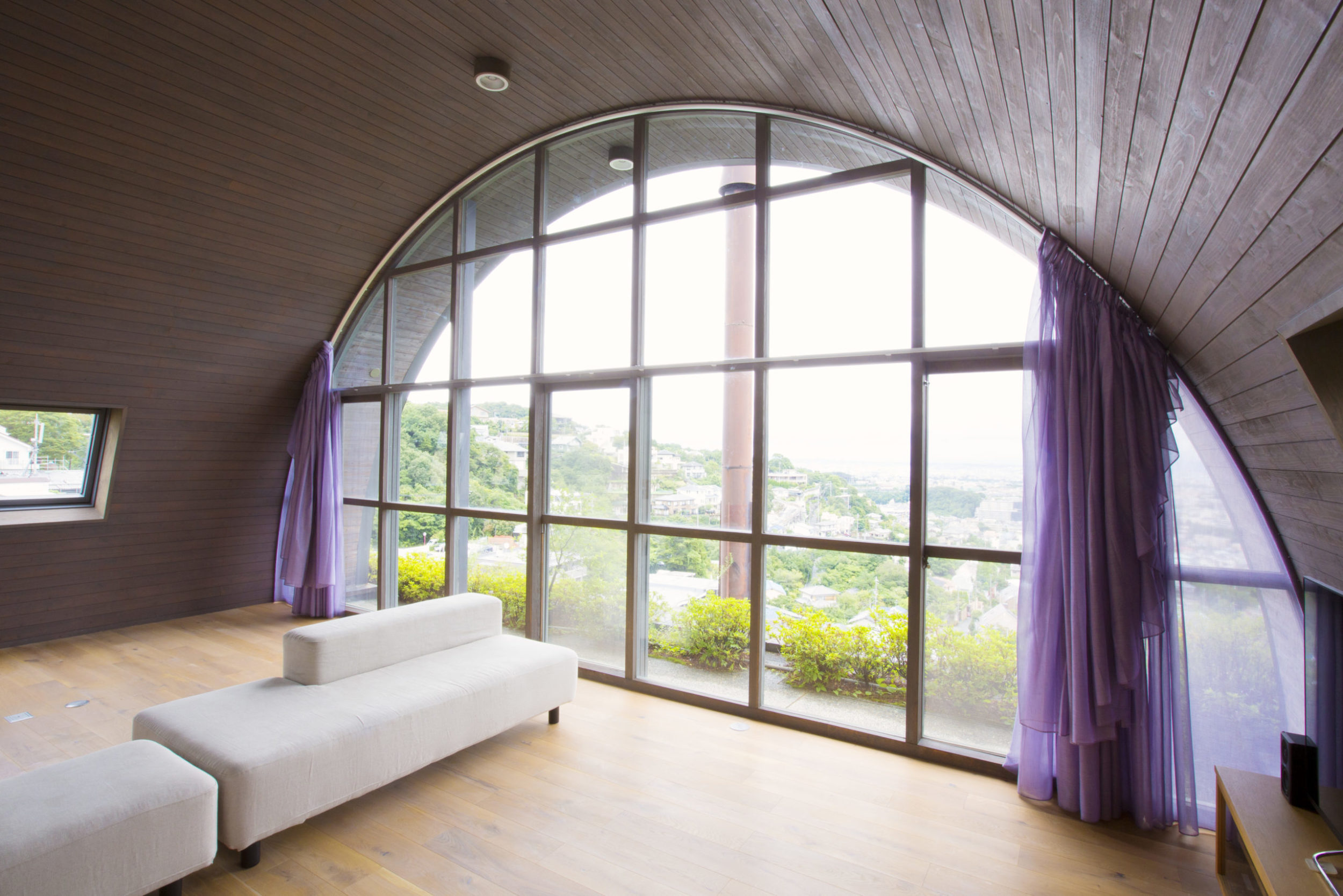 採光を調節したい室は、半円型を真っ二つに割り、かつ二段構成にした。